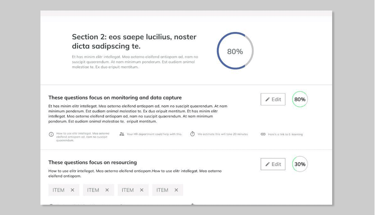 I delivered a redesigned first section of the SAQ, informed by user testing, workshops, and research. The new layout improved task clarity and engagement — laying a foundation for scaling improvements across the full questionnaire. Getting the first section done was the hard part, but once that was in place and data was flowing, we could easily build out the other sections using the new components and feed everything back into the backend to generate insights.